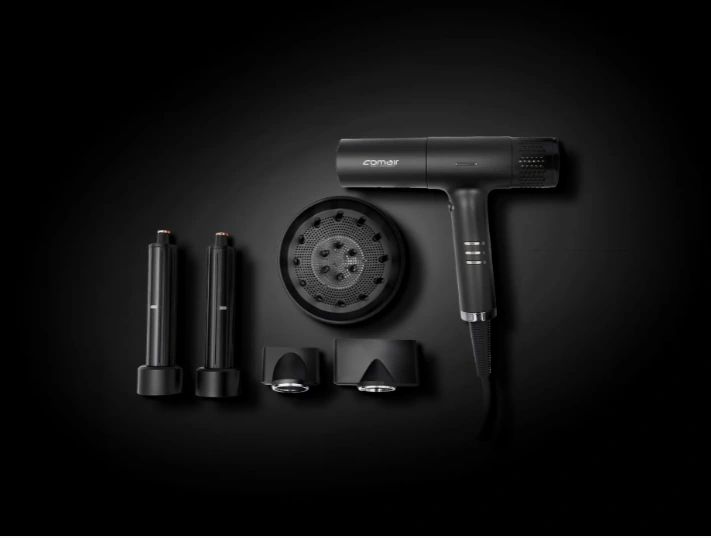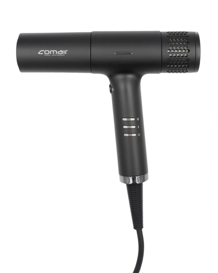 Comair T Magnetic nastavuje nové štandardy v profesionálnom stylingu vlasov. Je vybavený vysoko účinným bezkefovým jednosmerným motorom s až 110 000 otáčkami za minútu a ponúka výkon 2200 W AC fénu – pri spotrebe iba 1200 W energie. Vďaka najmodernejšej iónovej technológii sú vlasy hladké, lesklé a bez krepovatenia.