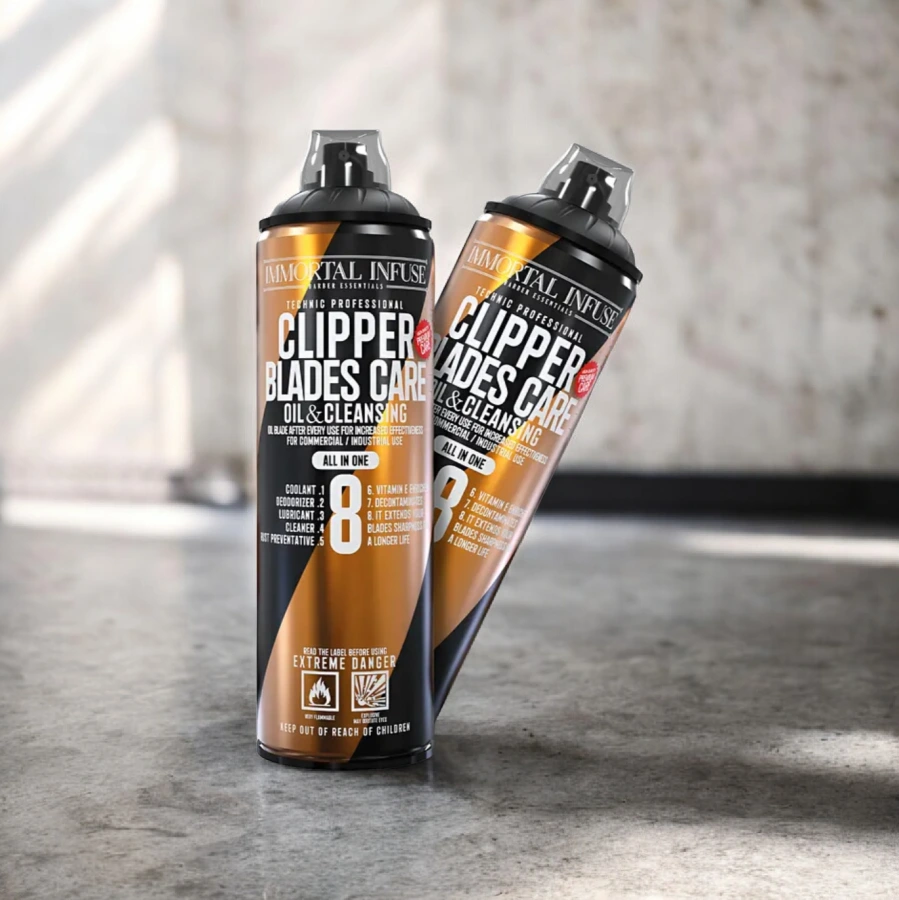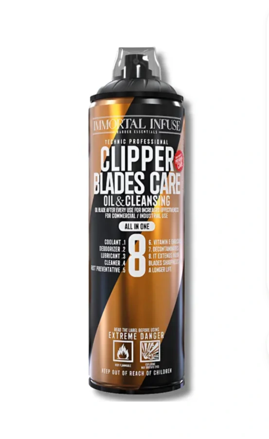 Osviežuje, dezodoruje, premasťuje, odstraňuje hrdzu a sterilizuje žiletky vďaka svojmu zloženiu 8 v 1. Obohatený o vitamín E je ideálny na odstraňovanie chĺpkov, lupín, prachových častíc a zvyškov po holení. Zanecháva ľahký mazací film, ktorý znižuje trenie na čepeliach, vďaka čomu je holenie hladšie a predlžuje životnosť čepelí. Môže sa použiť na všetky druhy kovov, ako sú holiace strojčeky, pinzety, nožnice na vlasy a klieštiky na nechty. Návod na použitie: Nastriekajte dostatočné množstvo oleja na predmet, ktorý čistíte. Dávajte pozor, aby ste olej nerozliali dovnútra alebo na strojček. Po nastriekaní môžete nechať strojček bežať približne 10 sekúnd, aby sa olej rozotrel po rezných častiach. Potom povrch utrite mäkkou vatovou guľôčkou. Počas aplikácie noste rukavice.