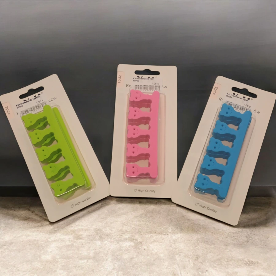 Rozdeľovače prstov sú praktická pomôcka pri pedikúre, ktorá zabraňuje zlepovaniu prstov a poškodeniu čerstvo nalakovaných nechtov. Udržia prsty v ideálnej vzdialenosti, vďaka čomu sa lak nanáša presne a bez rozmazania.