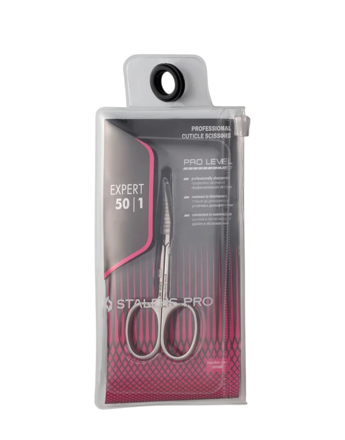 STALEKS PRO Expert Manikúrové nožničky na kožičku SE-50/1 sa vyznačujú klasickým zakrivením ručne brúsených čepieľok.